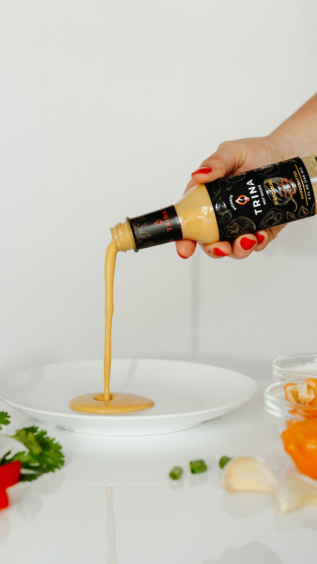 Crafted to perfection, TRINA Hot Sauce fuses together the right amount of heat with a big amount of flavor. The aroma greets you with a blend of fresh cilantro and oregano, mingling with the sweet scent of red peppers. Hints of garlic and onions add a savory depth, while the subtle promise of habanero heat entices the senses.